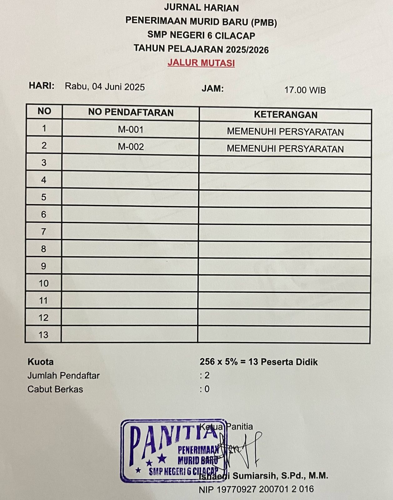 Home » Pengumuman» JURNAL HARIAN PMB_4 JUNI 2025_JALUR MUTASI