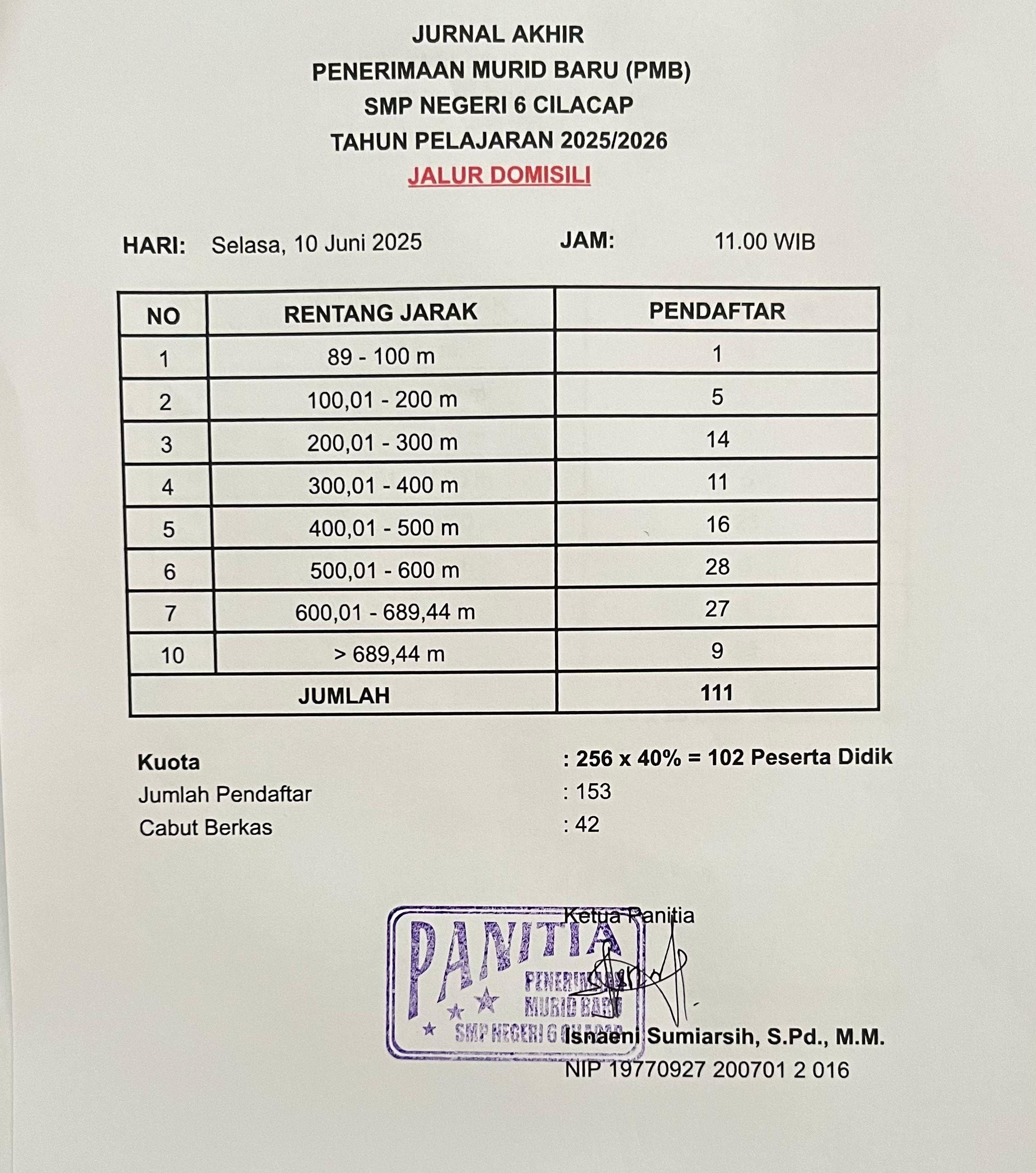 JURNAL PMB TGL 10 JUNI_JALUR DOMISILI