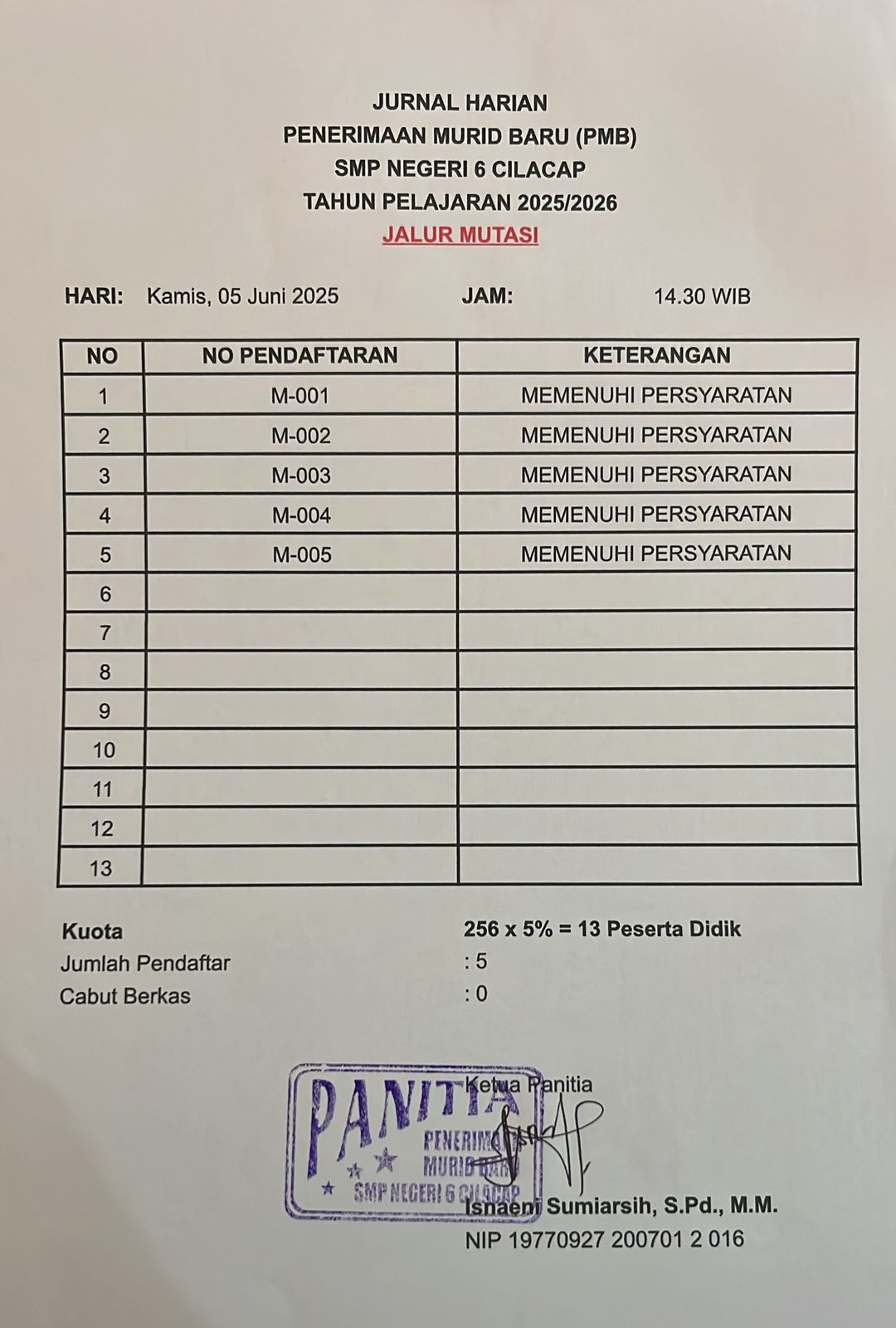 JURNAL PMB TGL 5 JUNI 2025_JALUR MUTASI